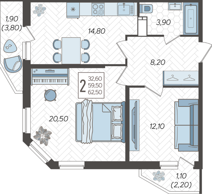 | Площадь, кв.м. | 62.5 |