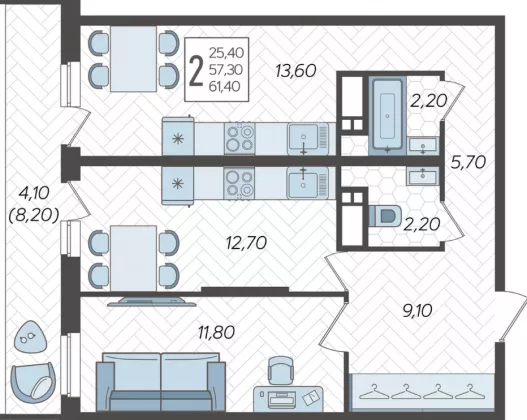 | Площадь, кв.м. | 61.4 |