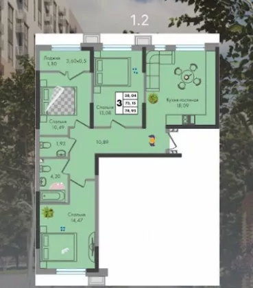 Продается 3-х комн. новостройка, 74.95 кв.м., 7/9 эт