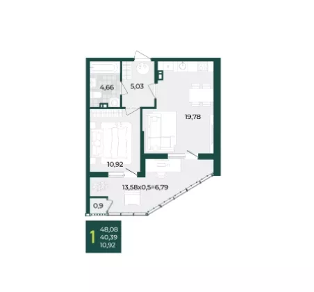 Продается однокомнатная новостройка, 48.08 кв.м., 11/21 эт