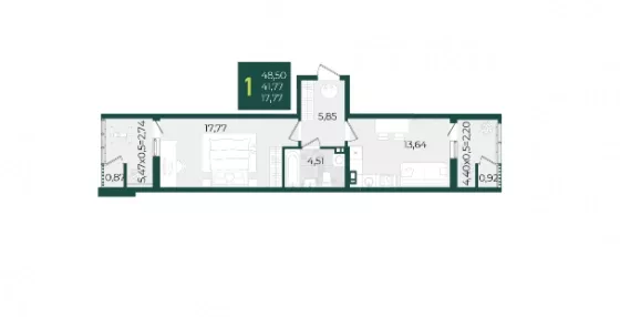 Продается однокомнатная новостройка, 48.5 кв.м., 8/21 эт