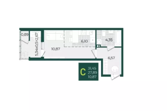 | Площадь, кв.м. | 31.45 |