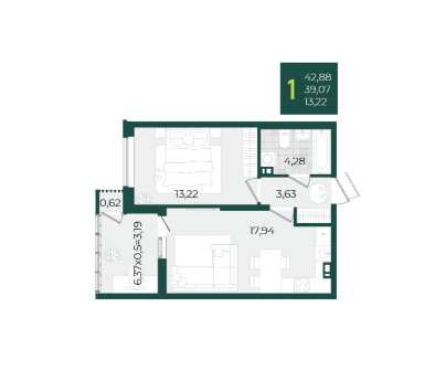 Продается однокомнатная новостройка, 42.88 кв.м., 11/21 эт