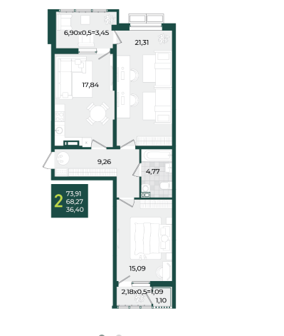 Продается 2-х комн. новостройка, 73.91 кв.м., 9/21 эт