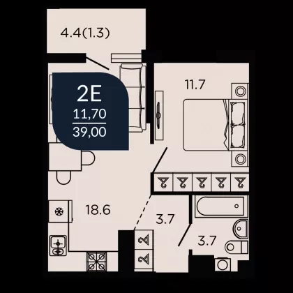 Продается однокомнатная новостройка, 39.95 кв.м., 21/23 эт