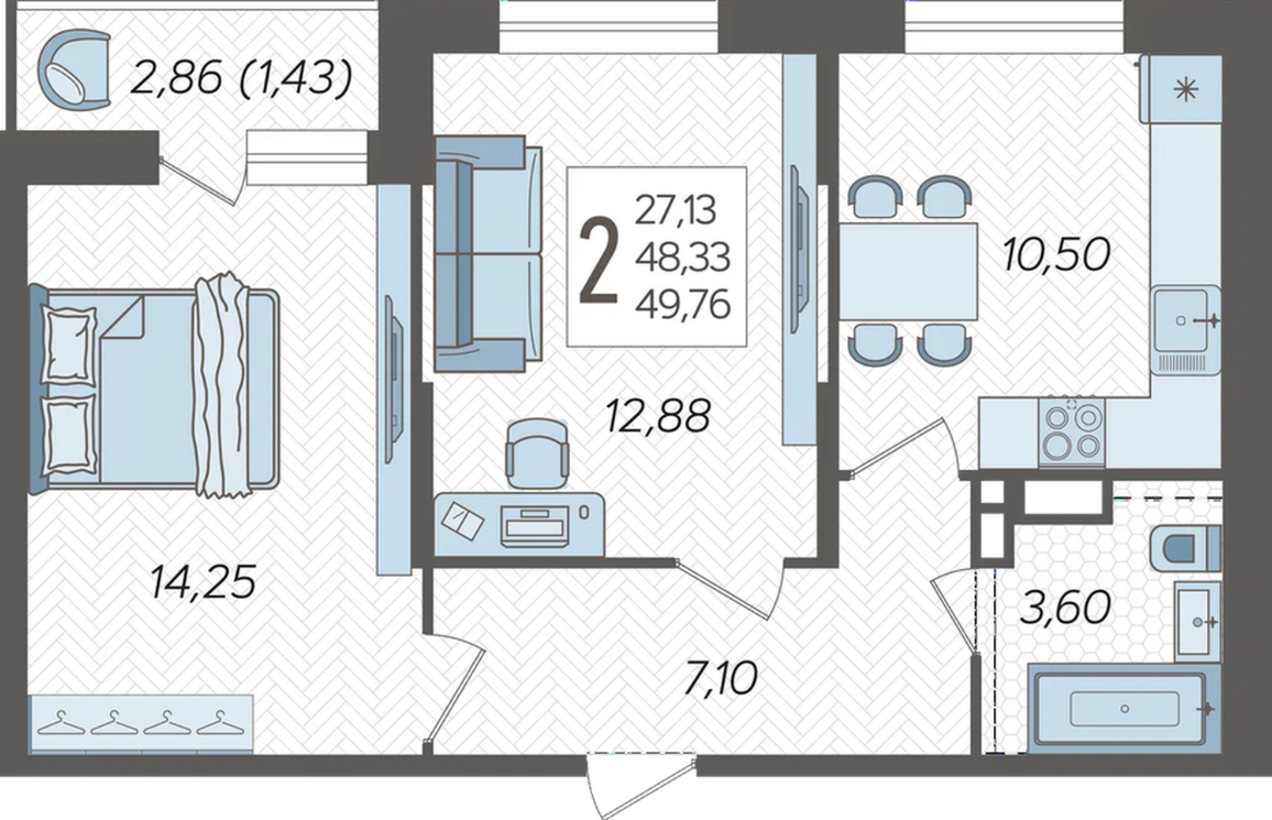 Продается 2-х комн. новостройка, 49.76 кв.м., 10/16 эт