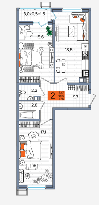 Продается 2-х комн. новостройка, 67.5 кв.м., 10/16 эт