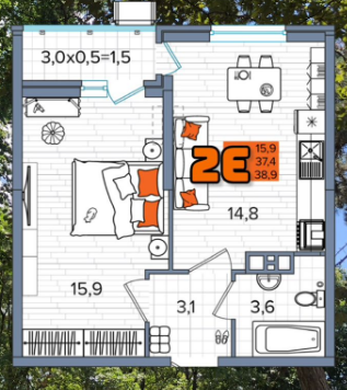 Продается однокомнатная новостройка, 38.9 кв.м., 5/16 эт