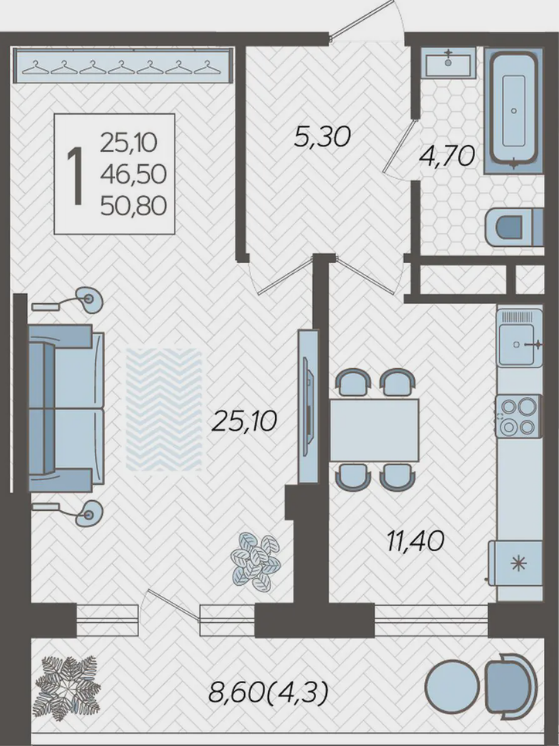 Продается 2-х комн. новостройка, 50.8 кв.м., 4/16 эт