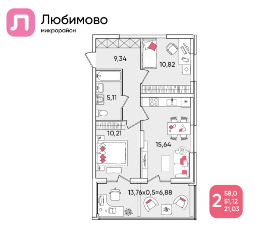| Жилая площадь | 21.03 |