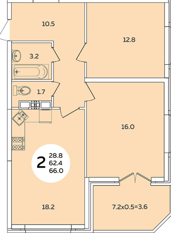 Продается 2-х комн. новостройка, 66 кв.м., 12/24 эт