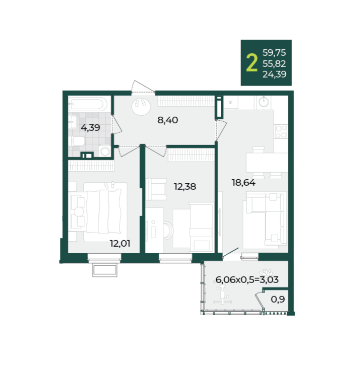 Продается 2-х комн. новостройка, 59.84 кв.м., 11/21 эт