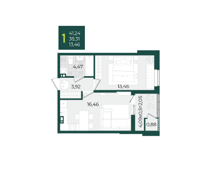 Продается однокомнатная новостройка, 41.24 кв.м., 10/21 эт