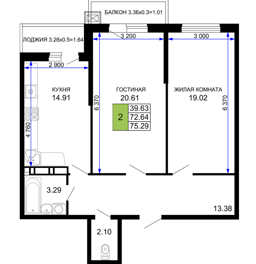 Продается 2-х комн. новостройка, 75.29 кв.м., 10/17 эт