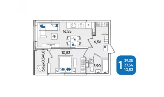 Продается однокомнатная новостройка, 39.45 кв.м., 8/24 эт
