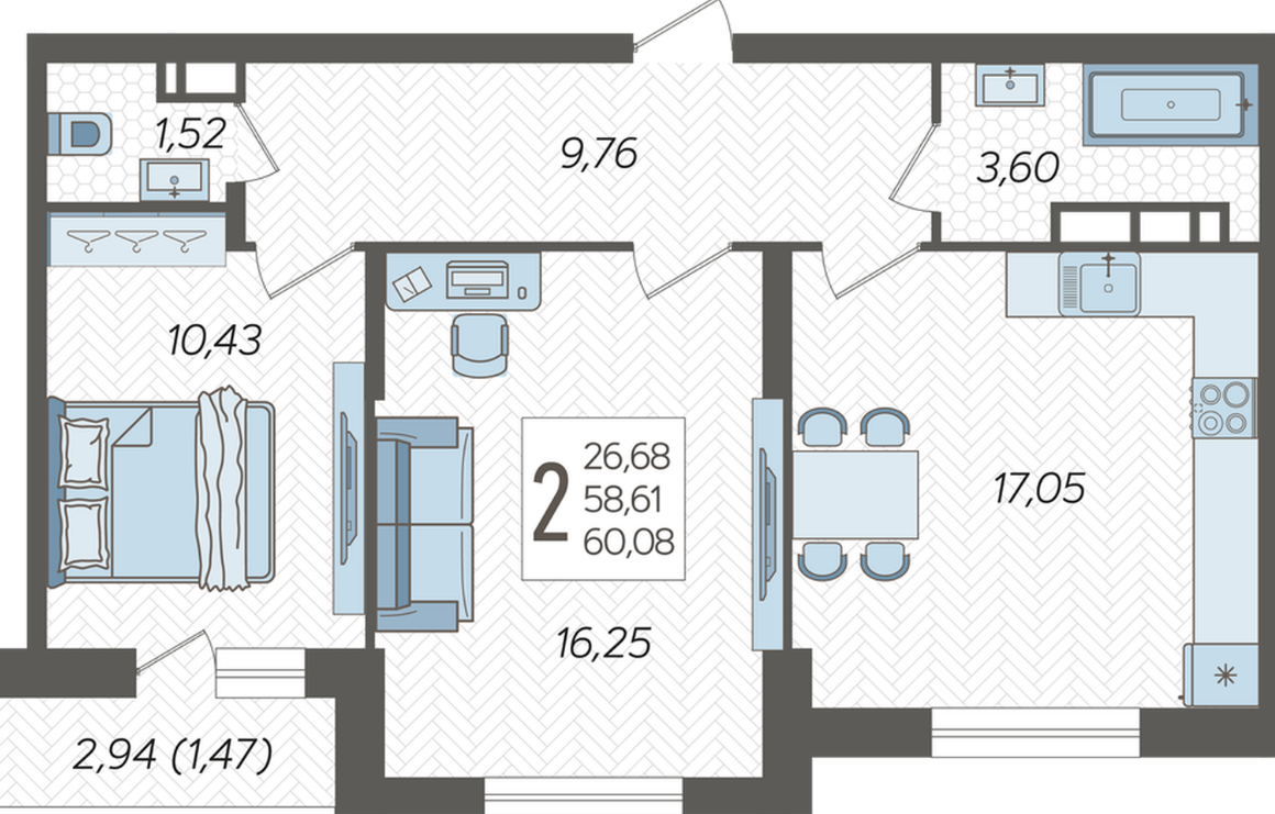 | Площадь, кв.м. | 60.08 |