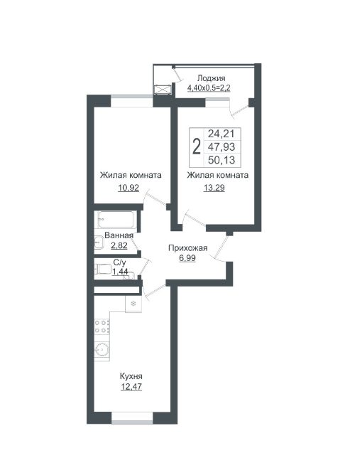 Продается 2-х комн. новостройка, 50.13 кв.м., 9/16 эт