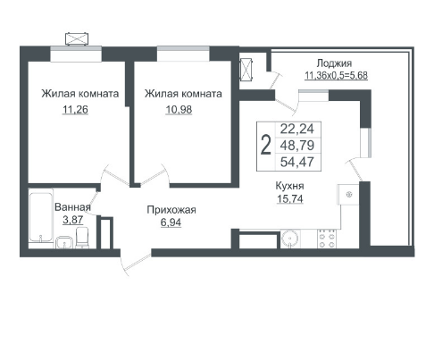 Продается 2-х комн. новостройка, 54.47 кв.м., 8/16 эт
