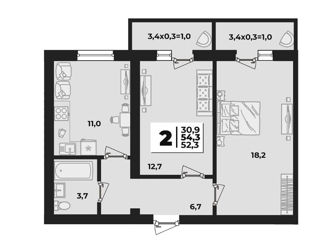 Продается 2-х комн. новостройка, 54.3 кв.м., 3/5 эт