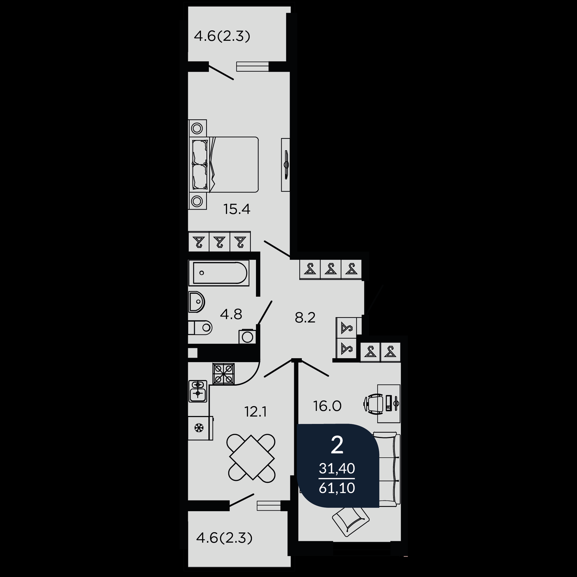 Продается 2-х комн. новостройка, 62.7 кв.м., 6/23 эт