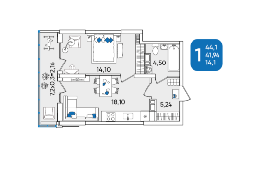 | Площадь, кв.м. | 44.1 |