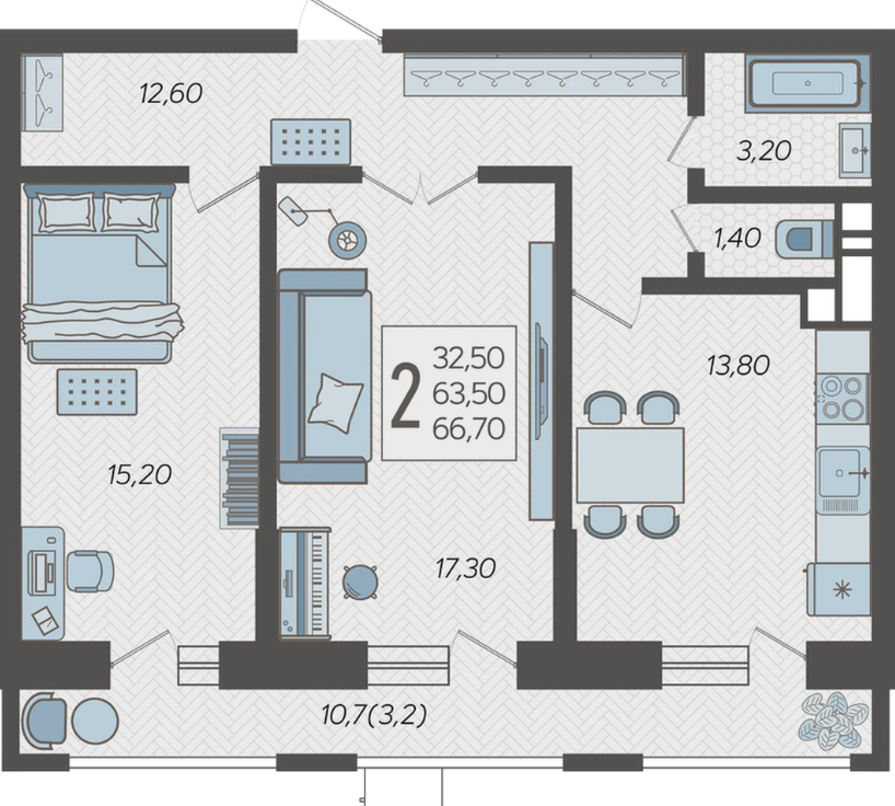 Продается 2-х комн. новостройка, 66.7 кв.м., 8/12 эт