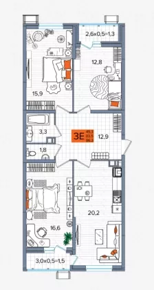 Трехкомнатная квартира в комплексе класса комфорт+.