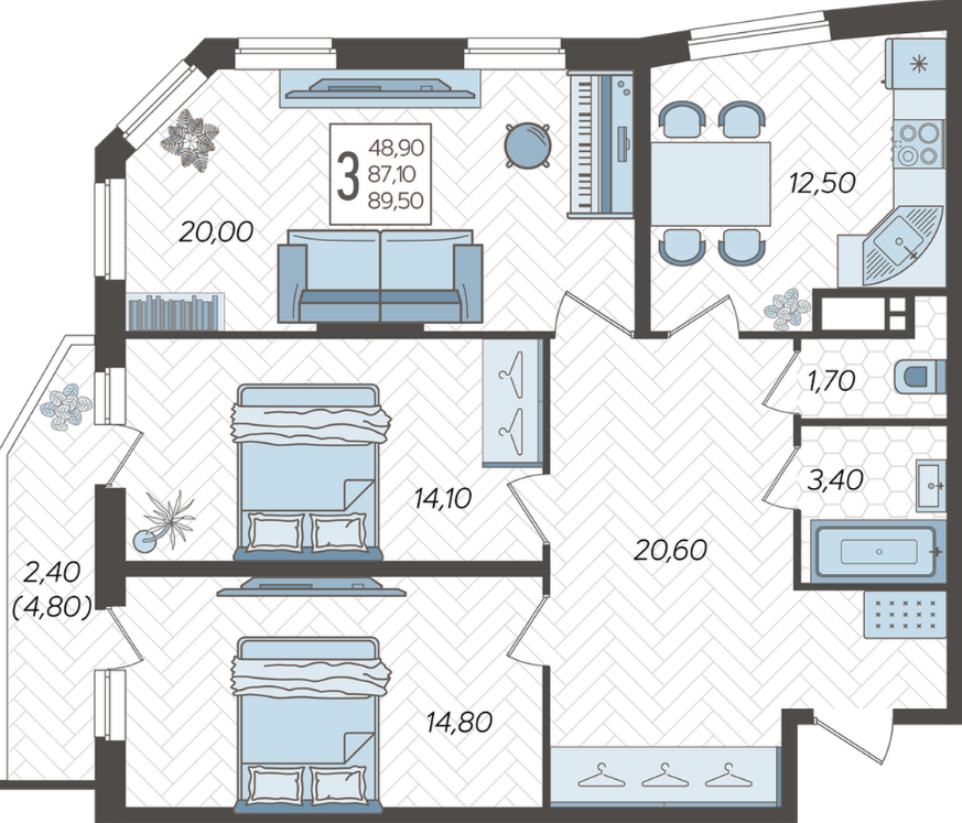 | Площадь, кв.м. | 89.5 |