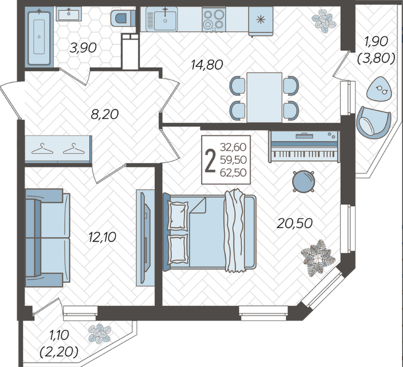 Продается 2-х комн. новостройка, 62.5 кв.м., 7/16 эт