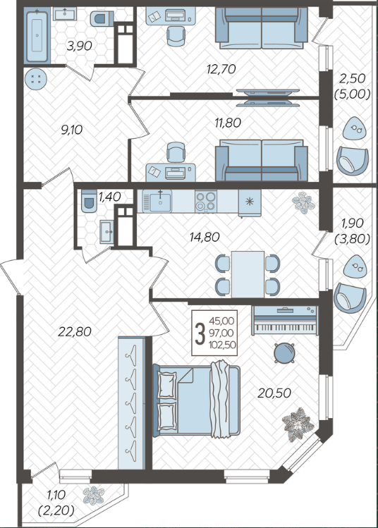 Продается 3-х комн. новостройка, 102.5 кв.м., 11/16 эт