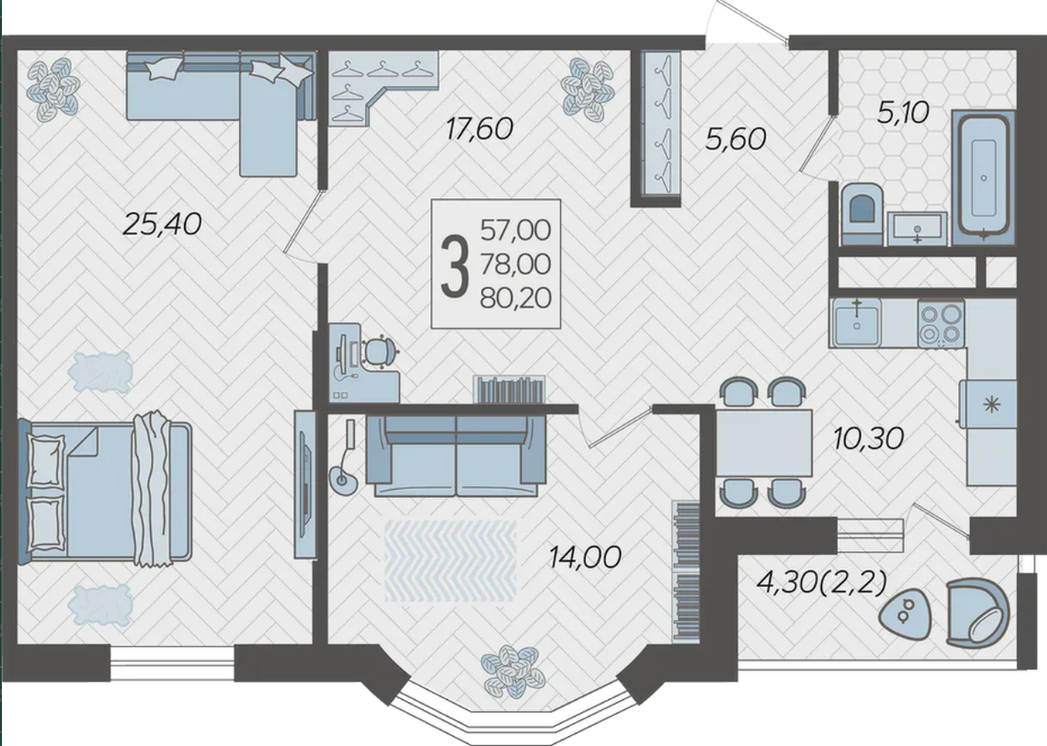Продается 3-х комн. новостройка, 80.2 кв.м., 5/16 эт