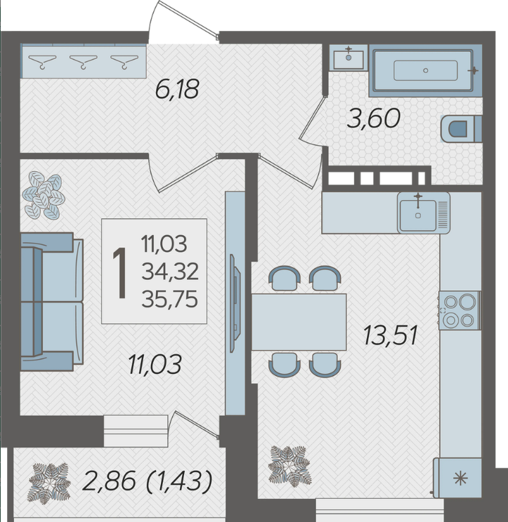 Продается однокомнатная новостройка, 35.75 кв.м., 12/19 эт