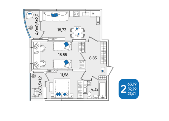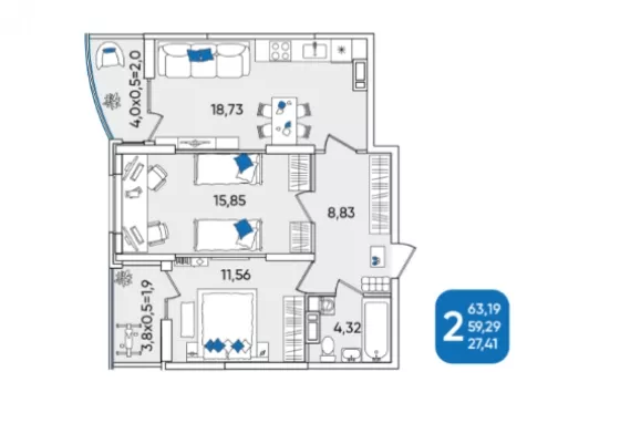 | Площадь, кв.м. | 63.1 |