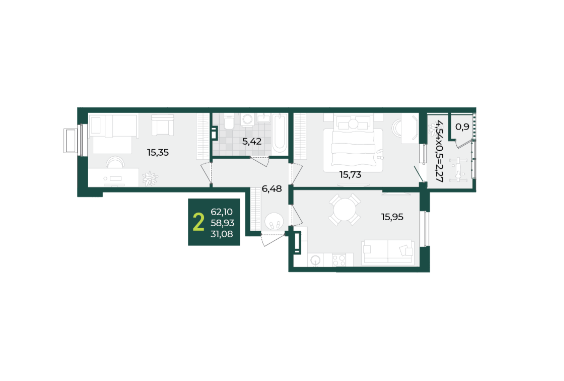 Продается 2-х комн. новостройка, 62.1 кв.м., 16/21 эт