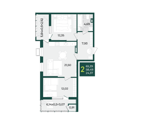 | Площадь, кв.м. | 65.39 |