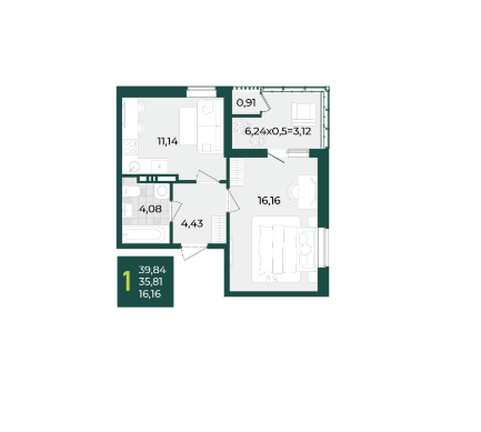 Продается однокомнатная новостройка, 39.84 кв.м., 10/21 эт