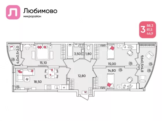 Продается 3-х комн. новостройка, 88.3 кв.м., 10/24 эт