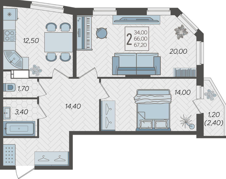 Продается 2-х комн. новостройка, 67.2 кв.м., 7/16 эт