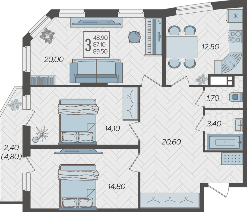 | Площадь, кв.м. | 89.5 |