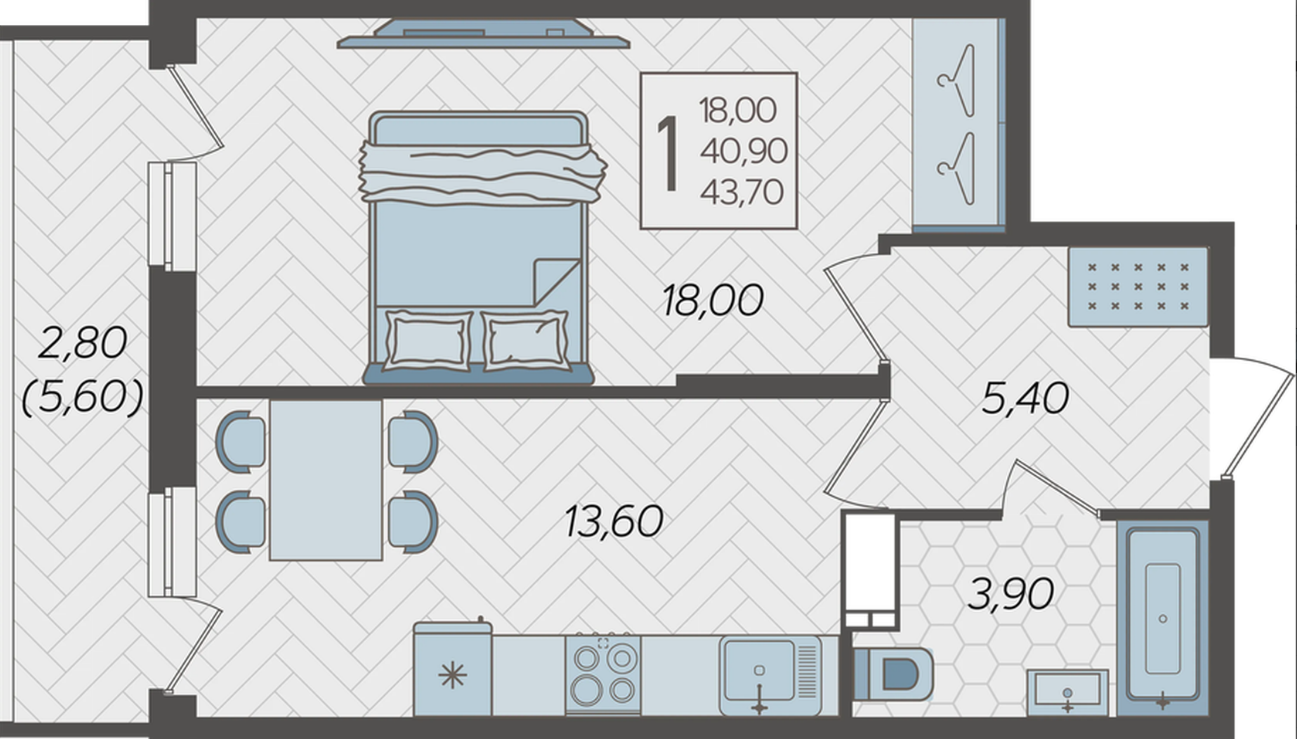 Продается однокомнатная новостройка, 43.7 кв.м., 9/16 эт