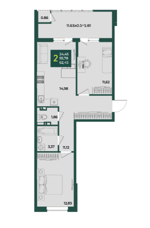 Продается 2-х комн. новостройка, 62.45 кв.м., 12/21 эт
