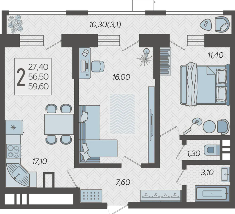 Продается 2-х комн. новостройка, 59.6 кв.м., 4/12 эт