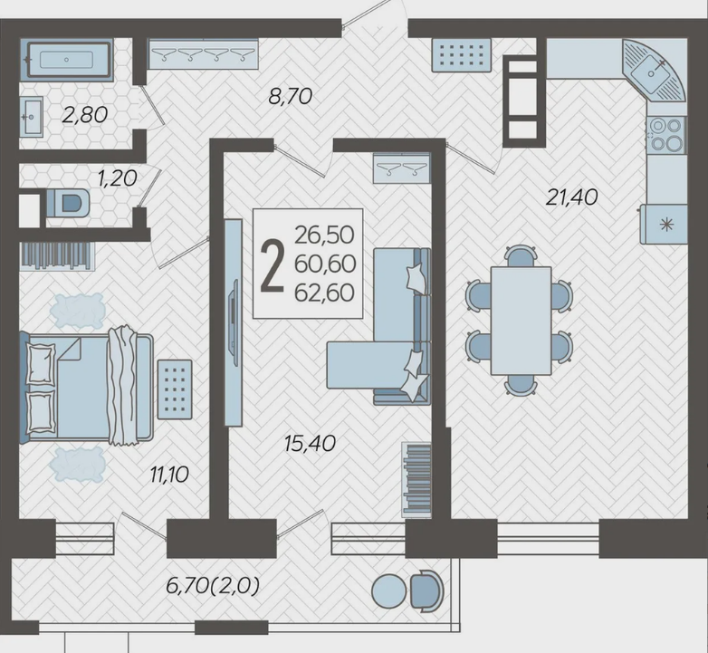 Продается 2-х комн. новостройка, 62.6 кв.м., 5/12 эт