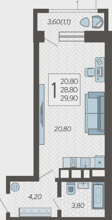 Продается 2-х комн. новостройка, 29.9 кв.м., 4/12 эт