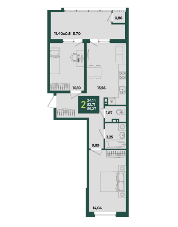 Продается 2-х комн. новостройка, 59.27 кв.м., 7/21 эт