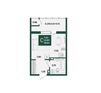 Продается Студия новостройка, 26.84 кв.м., 6/21 эт