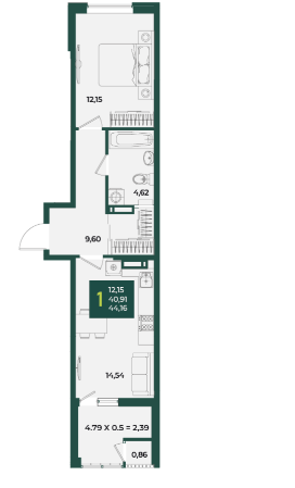 Продается однокомнатная новостройка, 44.36 кв.м., 7/21 эт