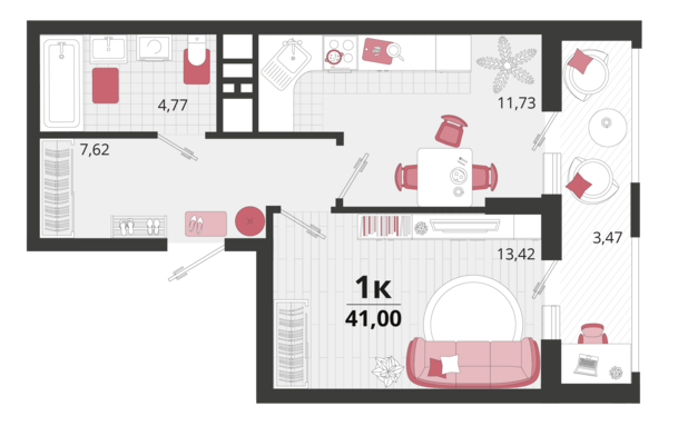 Продается однокомнатная новостройка, 41 кв.м., 7/24 эт