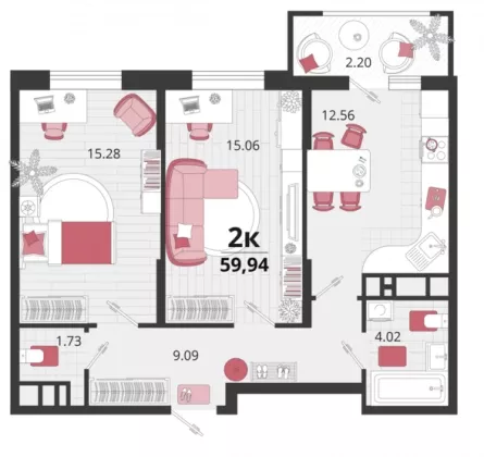 Продается 2-х комн. новостройка, 63.09 кв.м., 11/24 эт
