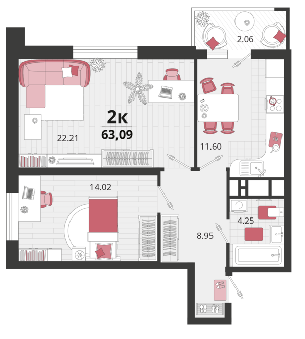 Продается 2-х комн. новостройка, 63.09 кв.м., 14/24 эт